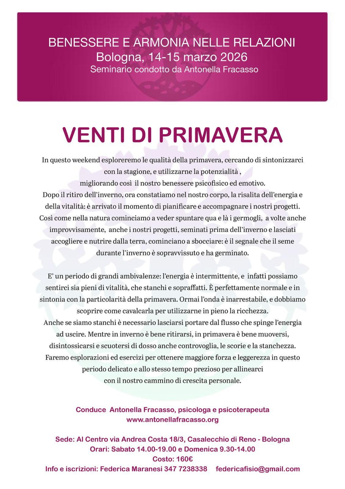BENESSERE E ARMONIA NELLE RELAZIONI – Bologna