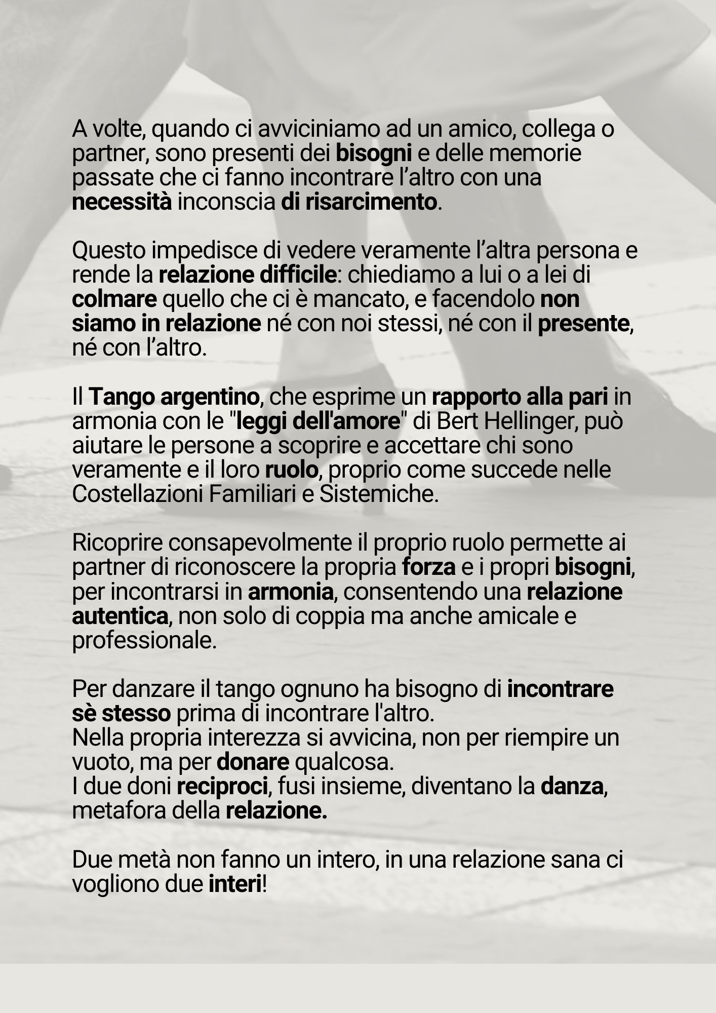 LA DANZA DELLA RELAZIONE – Come costruire rapporti che funzionano – WORKSHOP DI TANGO SISTEMICO, Chiavari (GE)