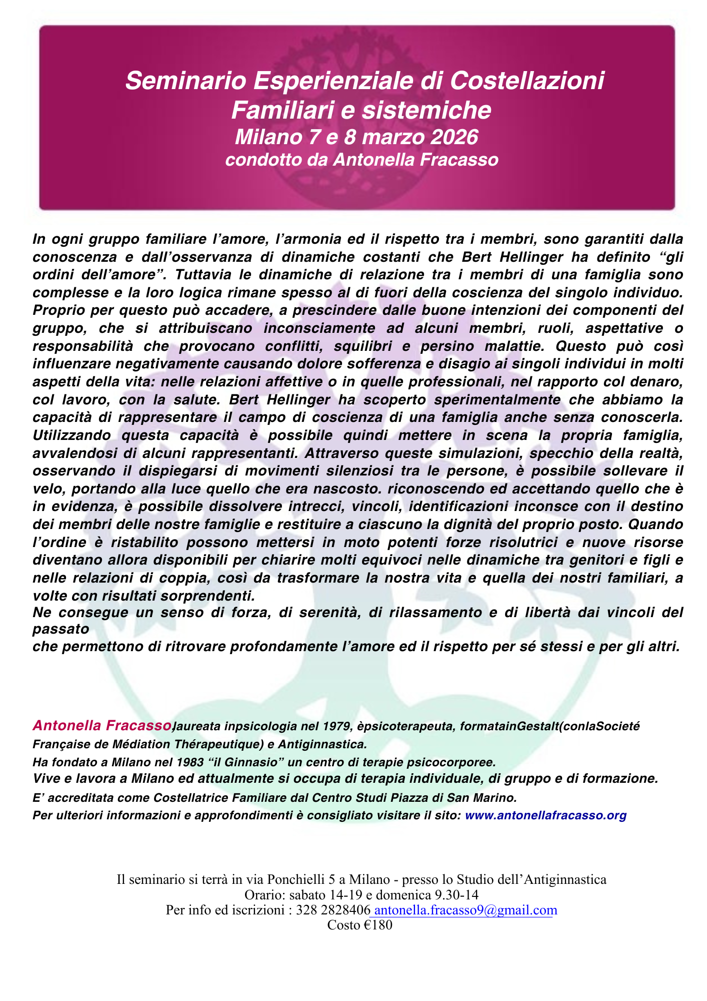 Seminario Esperienziale di Costellazioni Familiari e sistemiche – Milano